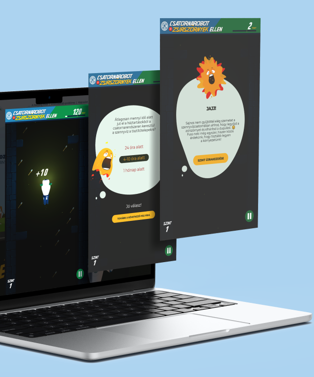 A Csatornarobot a zsírszörnyek ellen című online játék, valamint a hozzá kapcsolódó microsite és fizikai társasjáték elkészítése nem csak a kreatívjainknak és grafikusainknak, de a fejlesztőinknek is hatalmas örömöt jelentett. A microsite, az abban helyet foglaló játék, valamint az ezt népszerűsítő social media kampány a Fővárosi Csatornázási Művek felkérésére készült, és a célja a törlőkendő-problémára való figyelemfelhívás volt.
